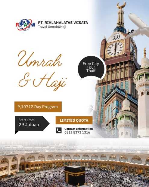 Seiring berjalannya waktu serta keinginan masyarakat yang begitu besar untuk beribadah dan berkunjung ke tanah suci Makkah dan Madinah. PT Rihlah Alatas Wisata mengembangkan dan membuka pendaftaran pemberangkatan ibadah UMROH dan HAJI.